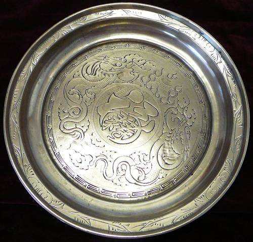 This Antique Brass Plate with its beautiful Dragon Design is of Chinese Origin. it is in very good condition. It is 250 mm in diameter, 30 mm deep and weighs 852 grams.