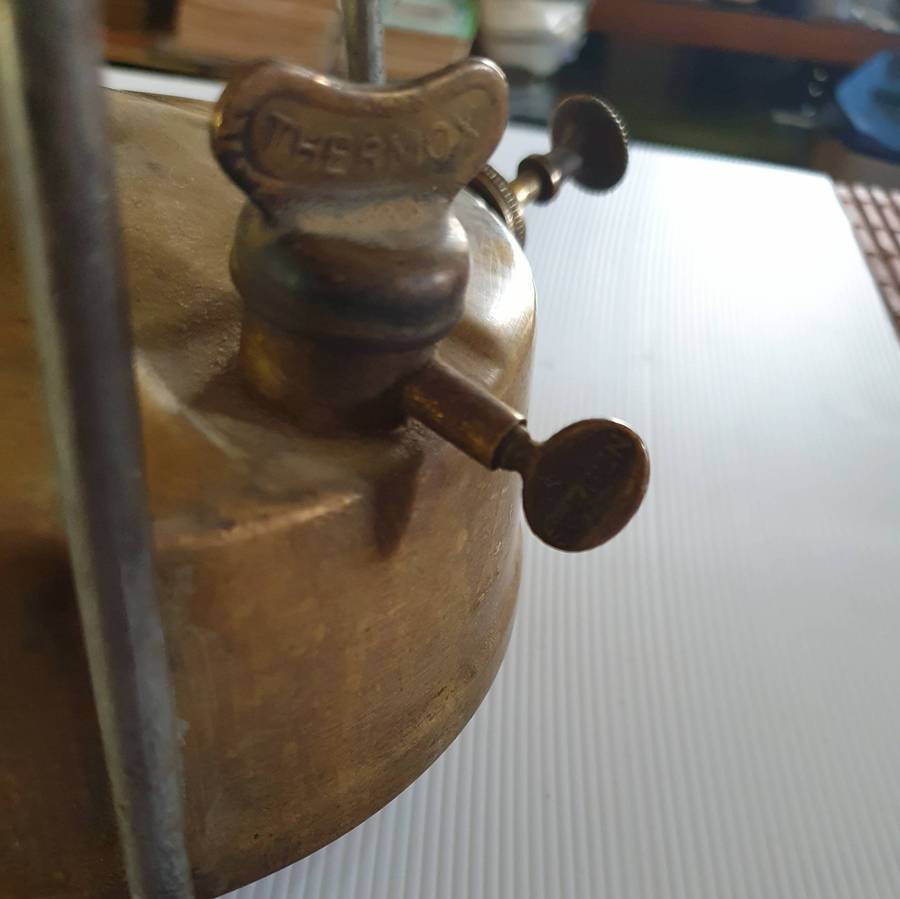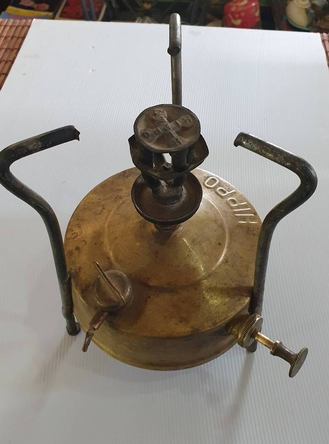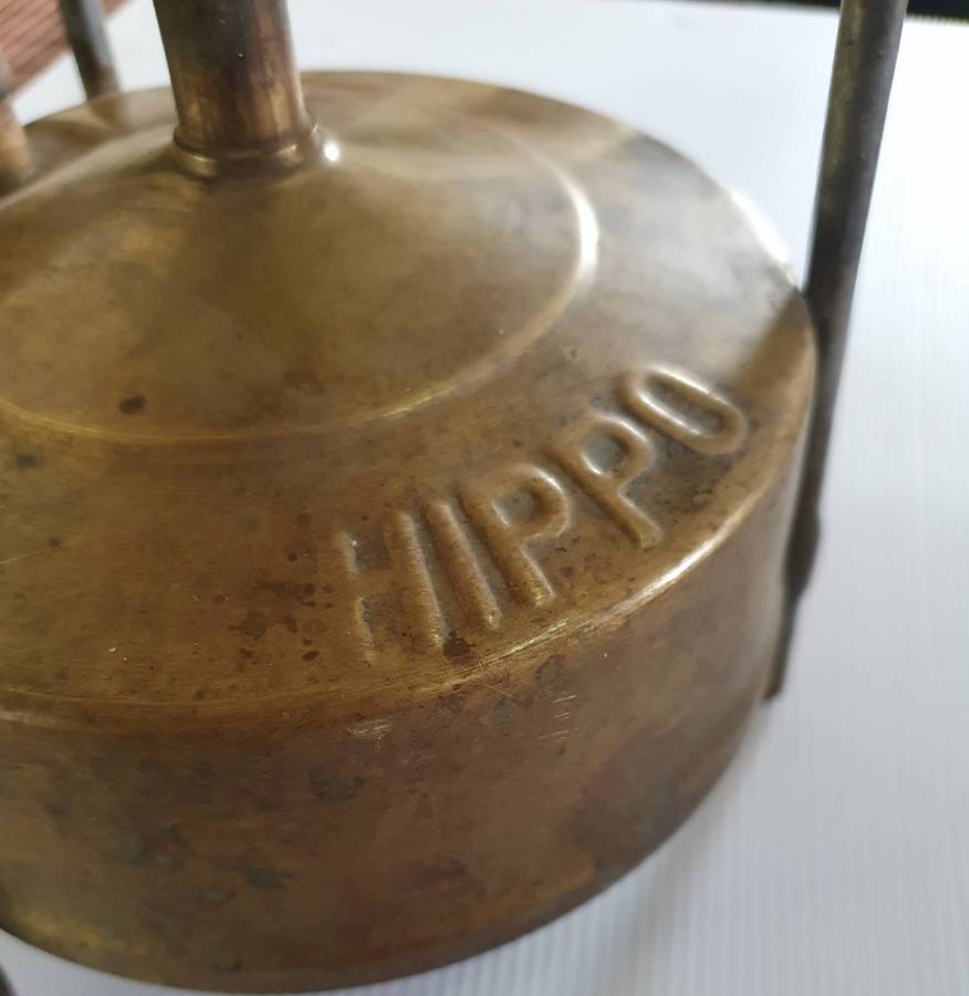 ON AUCTION: ANTIQUE BRASS HIPPO PARRAFIN STOVE.