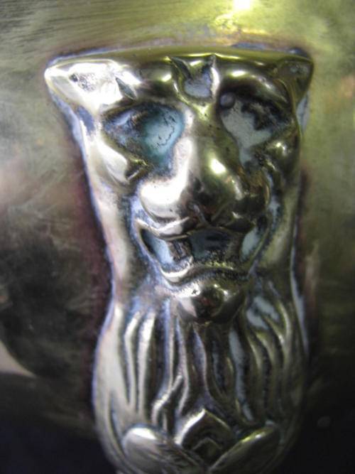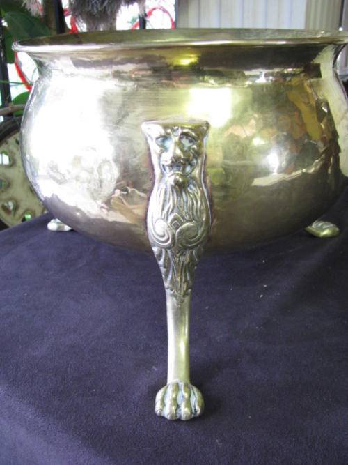 An Antique Brass Plant Pot Holder Or Container With Magnificent Detailed Lion Heads