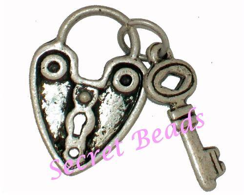 Antique Burnished Silver Lock & Key Charm - 1 set