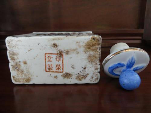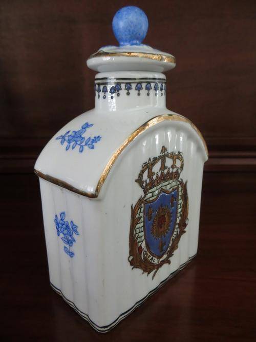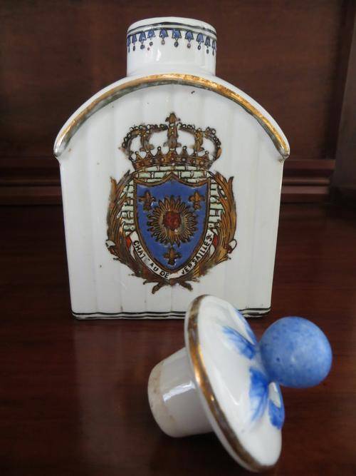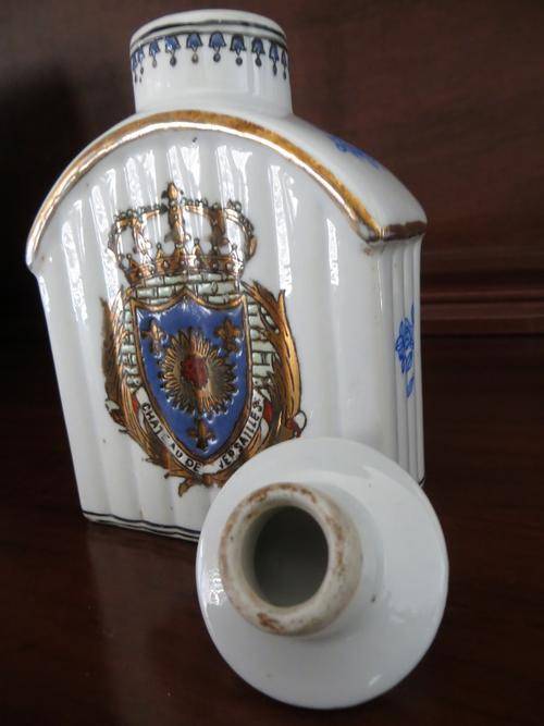 Beautiful Antique Hand Painted Chinese Porcelain Tea Caddy With Stopper of Chateau De Versailles, Golden French King Crown. Signed/Marked at bottom.