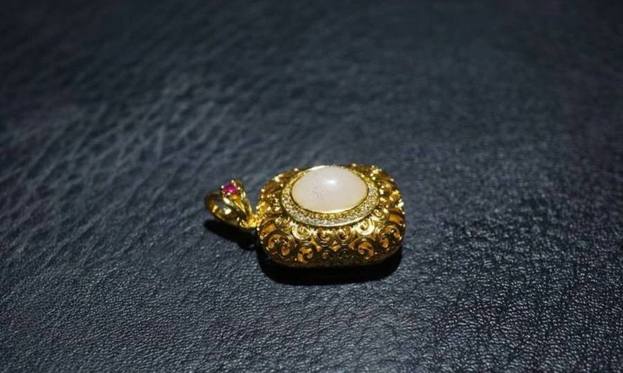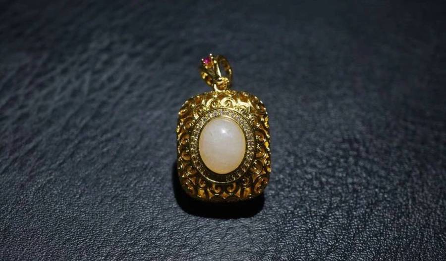 Antique Chinese Sachet Pendant with Old Hotan White Jade.