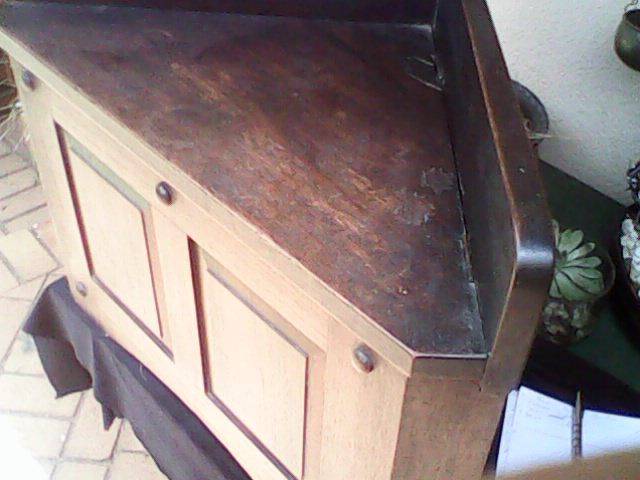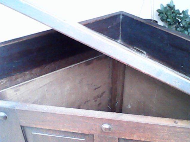 Dark wood with lovely front design. Dimensions: 77cm (L) x 44cm (W) x 55cm (H). Good condition!