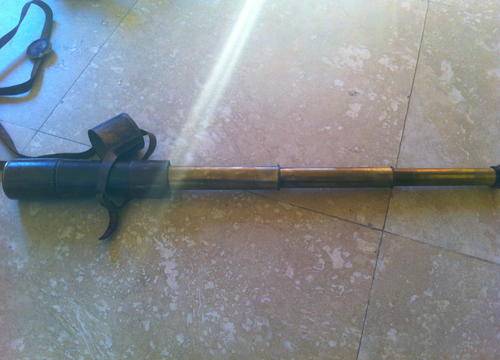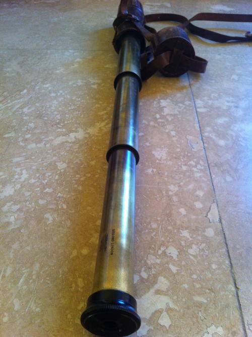 Nice example of a tapered-barrel field telescope. Measures 790" fully extended with sunshade and 270" closed.