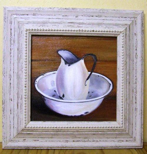 ANTIQUE ENAMEL WASHBASIN AND JUG