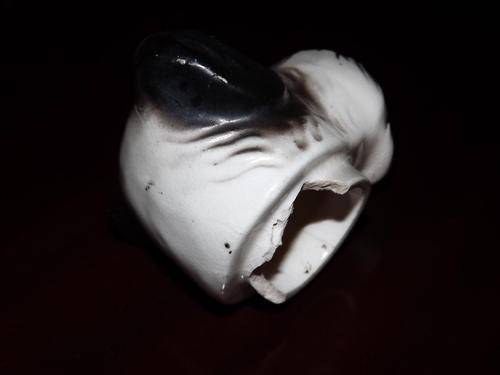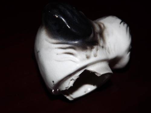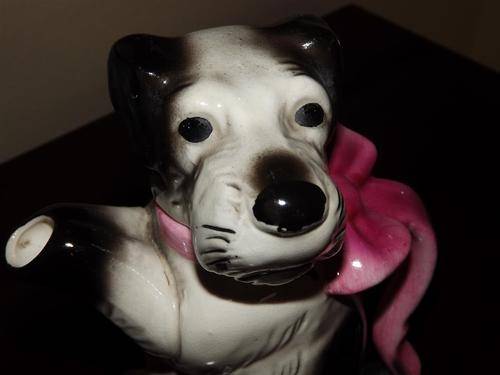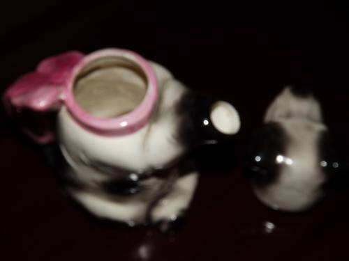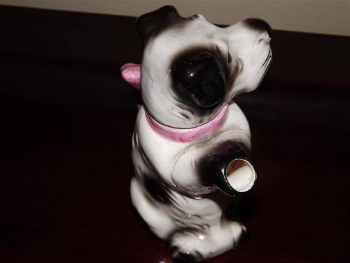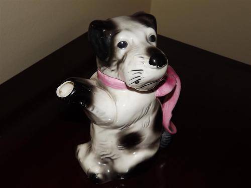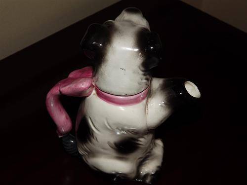 IT IS GOOD VINTAGE CONDITION, EXCEPT FOR THE CHIPPED AREA ON THE RIM OF THE DOG HEAD TEAPOT LID (ON THE PIECE THAT FITS INTO THE TEAPOT BASE) THE HEAD LID STILL FITS AND SITS IN PLACE AND THE CHIPPED AREA IS NOT NOTICEABLE WHEN THE LID IS IN PLACE. PLEASE REFER TO THE PHOTOGRAPHS ABOVE AS THEY DO FORM PART OF THE DESCRIPTION. I PRESUME THAT THIS TEAPOT IS A "ERPHILA STYLED" TEAPOT AS THERE IS NO MAKERS MARK ON THE BOTTOM. THIS TEAPOT WAS PART OF MY LATE GRANNY'S TEAPOT COLLECTION.