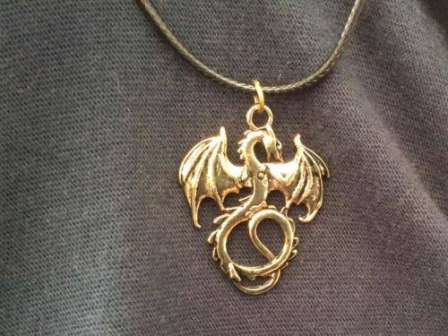 Antique Gold Tone Flying Dragon Unisex Fashion Necklace