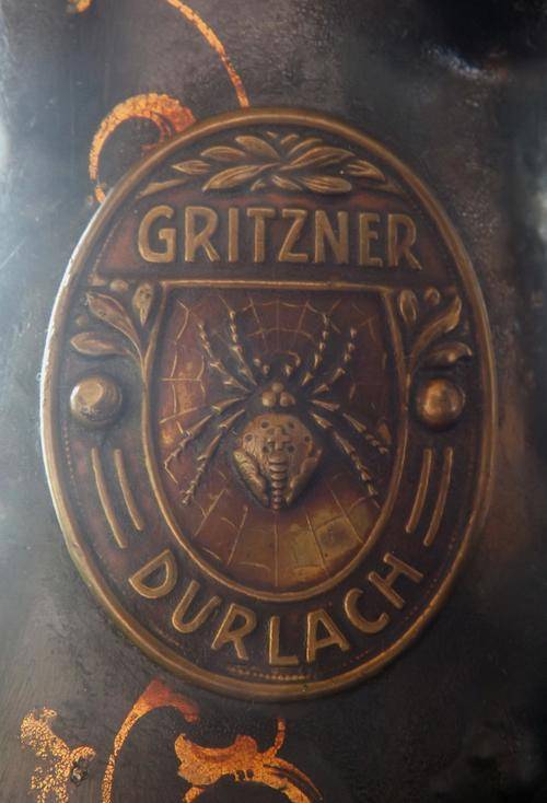 several extra feet, a spare shuttle (bobbin) and a large metal wheel.