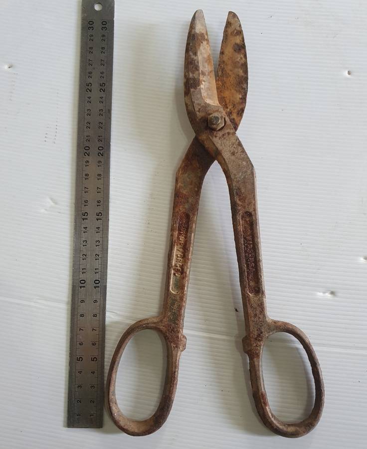 ON AUCTION: ANTIQUE HUGE TIN SNIPS. 30CM . DROP FORGED. USA.