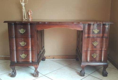 Unique Antique Imbuia Ball & Claw Desk For Sale In Great Condition.
