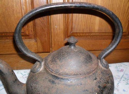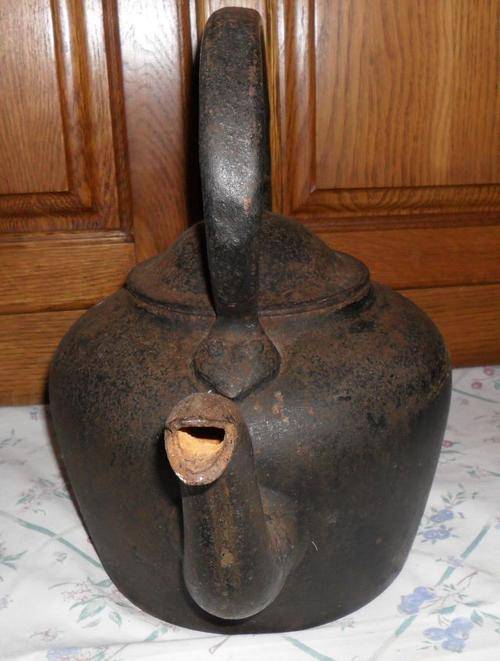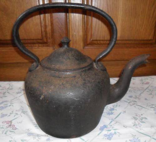 ANTIQUE KENRICK 10 PINT CAST IRON KETTLE -HEIGHT 34CM INCLUDING HANDLE X SPOUT TO END OF HANDLE 35CM- PLEASE VIEW PHOTOGRAPHS FOR CONDITION - POSTAGE R80