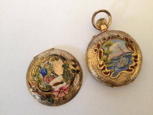 Lovely 14ct Gold enamel Pocket watch , no watch hands and is sold as is. Total watch weight is 24 grams
