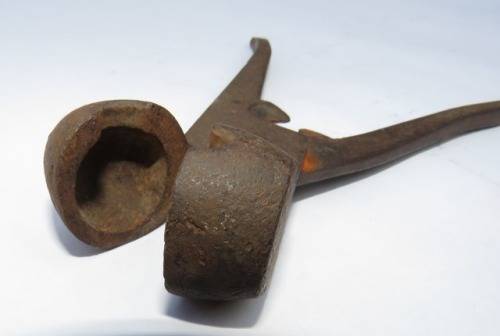 Sprue cutter built into handles, made of cast iron. Numbered 12 (?).