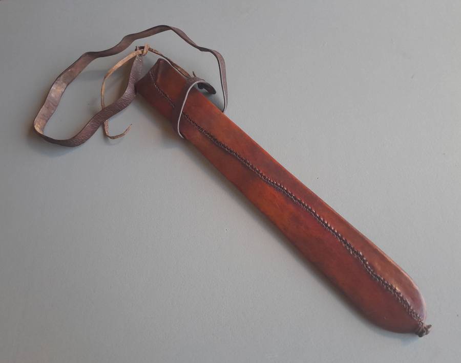 Antique Maasai Seme (Lion's Sword) in Leather Sheath With Shoulder Strap.