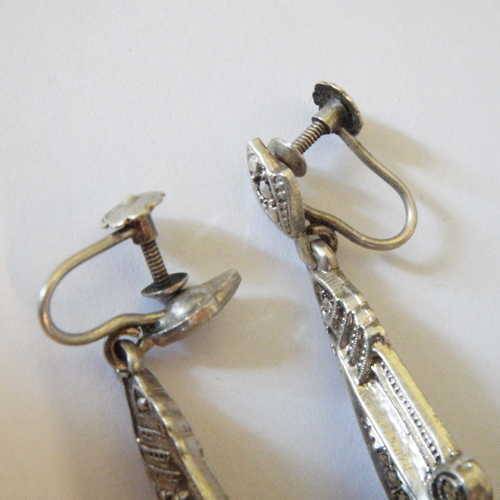 Antique Marcasite screw on earrings - 835 Silver
