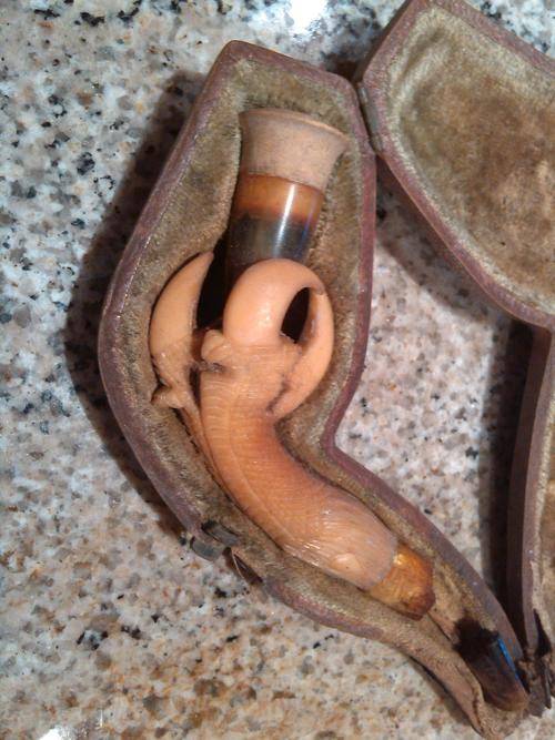 Up for auction is an Antique Meerschaum Cheroot Pipe - carved Eagle Claw in box. Condition as per pictures.