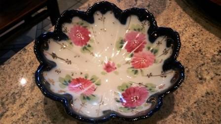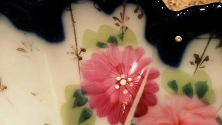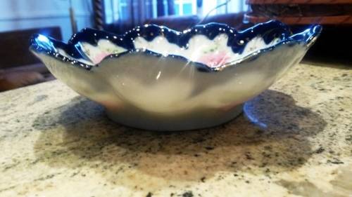 hi think its transfer as its got a white crease in pattern very unusual not a large bowl more medium - can also see through the bowl if in the light - no chips etc i can see has age and related wear and very pretty