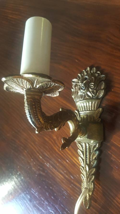 Antique ornate bronze brass electric wall sconces (Rose Design)