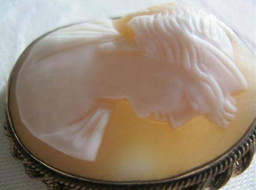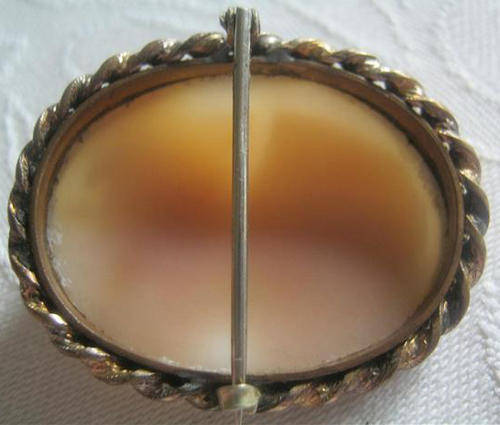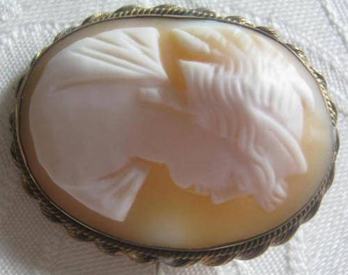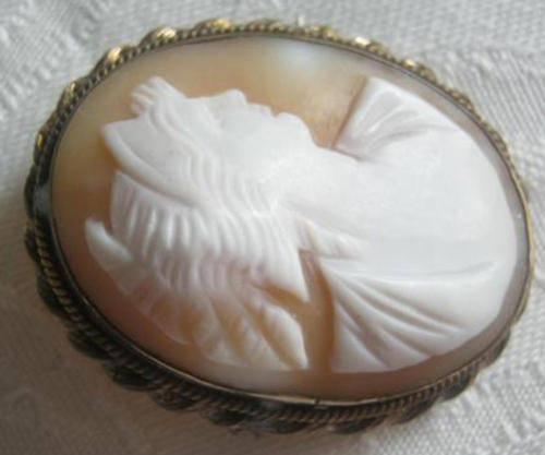 HANDCARVED, ANTIQUE CAMEO SHELL BROOCH, SET IN PINCHBECK WHICH IS A MIXTURE OF ZINC AND COPPER, THAT RESEMBLES GOLD.THE BROOCH IS IN GOOD ANTIQUE CONDITION AND THE C SHAPE CLASP IS WORKING PERFECTLY. LENGTH 4cm, WIDTH 3cm.