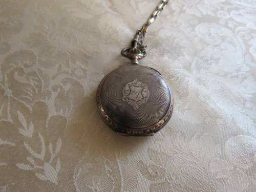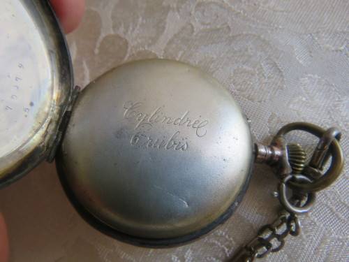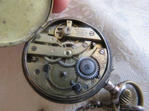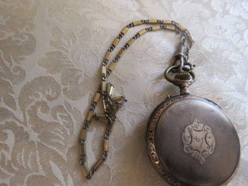 Antique pocket watch with chain 800 silver case and cylinder movement.Advance retard.