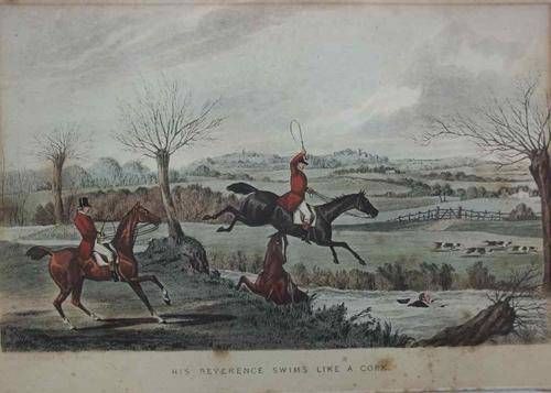 Antique Print "His Reverence Swims Like A Cork" - 31cm/21cm