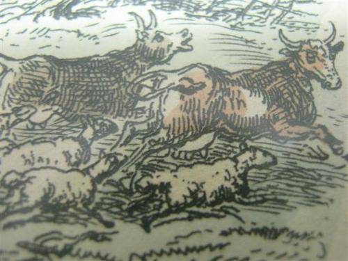 LIKE MANY ARTISTS CRUIKSHANK WAS UNHAPPY ABOUT THE CHANGES THAT HAD RESULTED FROM THE INDUSTRIAL REVELUTION. THIS DRAWING ILLUSTRATES THE CITY OF LONDON GROWING EVER LARGER AND TAKING OVER THE BEAUTIFUL ENGLISH COUNTRYSIDE. I LOVE THE FINE DETAIL IN THIS ANTIQUE PRINT AND THE EXPRESSION OF HUMOUR FROM DAYS LONG GONE...... I AM NOT SURE WHETHER THIS IS AN ETCHING OR A PRINT BUT IT HAS BEEN COLOURED IN WITH WATER PAINTS THAT HAVE FADED WITH AGE.