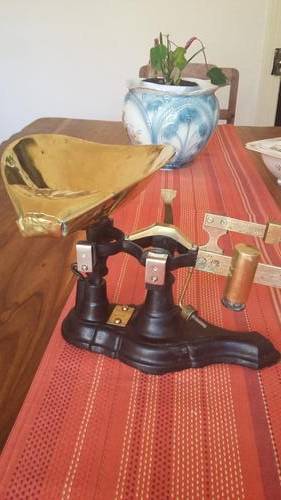 With its two counterweights, the scale will weigh grams, ounces and it appears you can convert a pound to a bushel, a dry measure of 8 gallons for grains, fruit and so on.