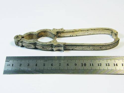 Antique silverplated nutcracker plier with double opening - unknown makers mark - as per photo