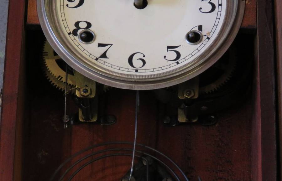 Antique small wall clock - Beautiful piece - Face 15 x 15 cm - Clock 48 x 23 cm