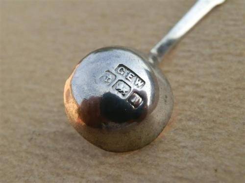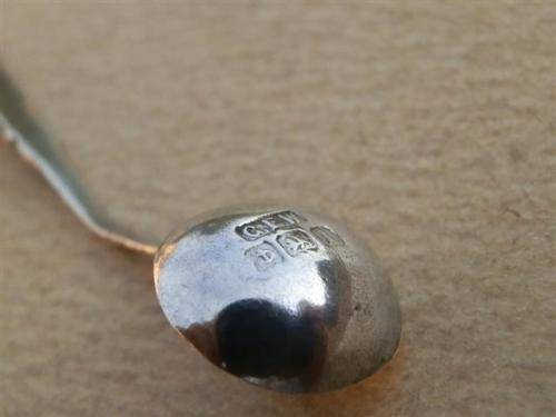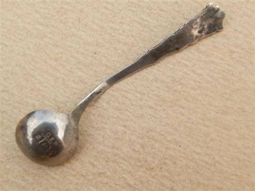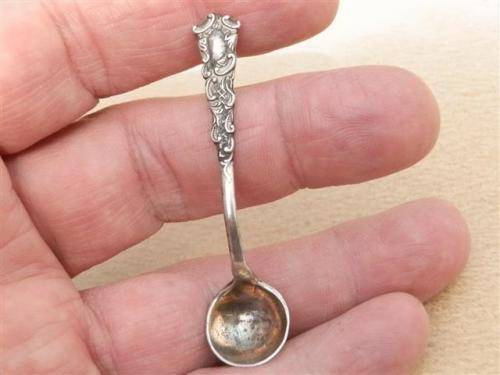 Antique solid silver salt spoon, Birmingham, circa 1910 and a antique silver pickle - weight 7.3 g.