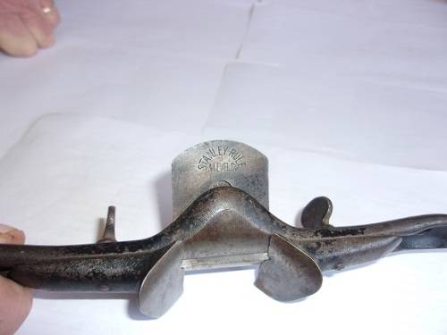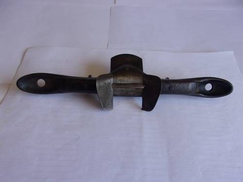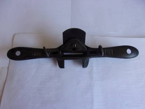 Antique Stanley Rule & Level Co, No. 65 stop chamfer spokeshave plane. I would date this rare chamfer plane to the late 1800s. It is a spokeshave with 2 guides adjustable with thumbscrews, in order to size the chamfer. The plane is completely manufactured from cast iron, and seems to be quite rare. It is in good complete condition. Great buy for the wood worker.