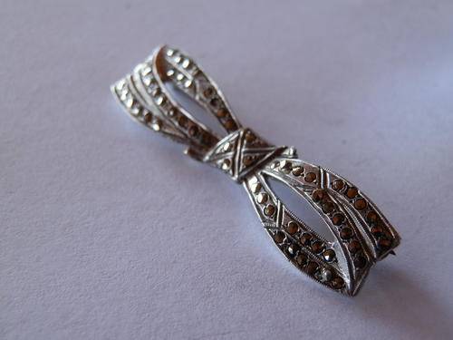Antique sterling silver marcasite brooch, in good condition