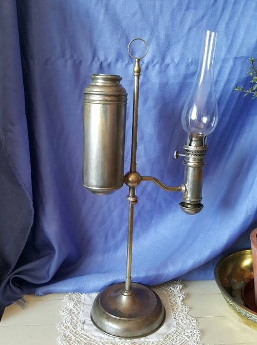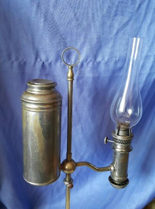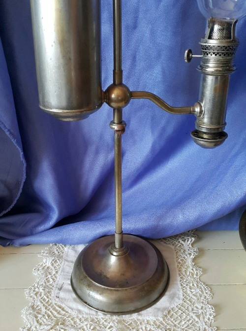 19th century antique nickel/brass oil-kerosene one armed Student Lamp in perfect working condition.