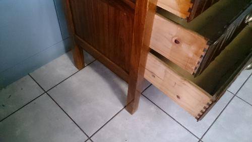 Nice old teak chest of drawers, definitely shows its age. Still a good looking piece though.
