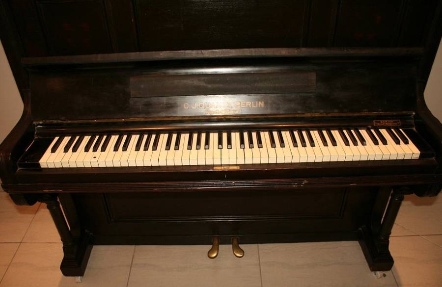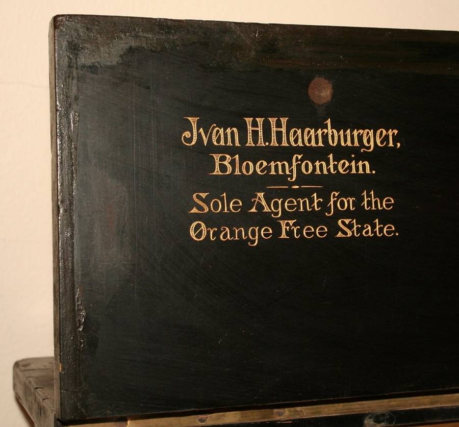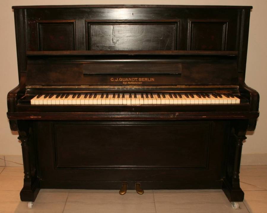 An antique piano (I gather) by C. J. Quandt, made in Berlin. Distributed in the old Orange Free State by sole distributor Ivan H. Haarburger, from Bloemfontein.