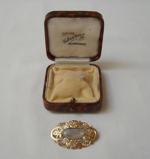 Collins & List (Pty) Ltd., Jewellers, Johannesburg, tortoise shell paper covered presentation case.