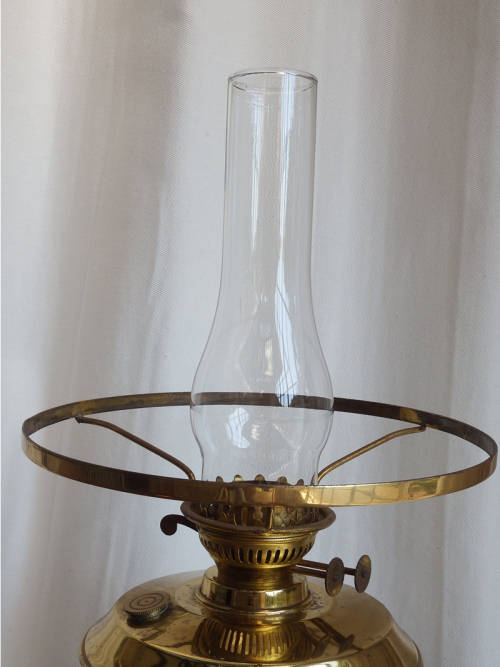 The glass lamp shade, which I believe is original,as well as the chimney, are both in excellent condition with no cracks or chips.