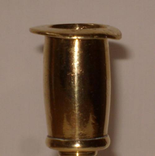 Overall scratches and tarnishing, stem askew, lip of candle holder and foot bent.