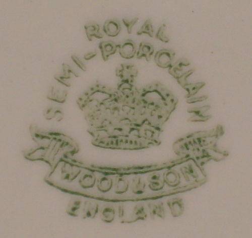 Royal Semi-Porcelain, Crown, Wood & Son and England mark stamped in green.
