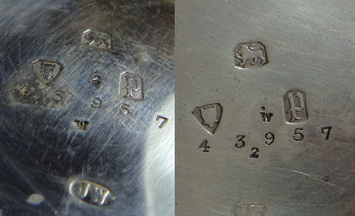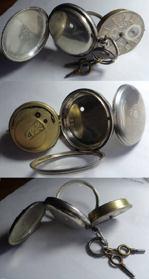 The watch weighs 112.1 grams in total and is 48mm in diameter. It is twice hallmarked for London 1930 and numbered 43957. The silver makers mark is “JW”. The glass front is intact.