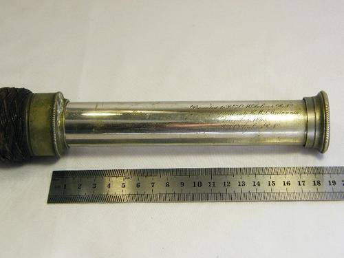 Antique Voigtlander & Sohn telescope - presented to D.E St Martin Delias of Royal Navy for passing first into H.M.S Brittania December 1895 from W.J Littlejohns of the Royal Navy - as per photo