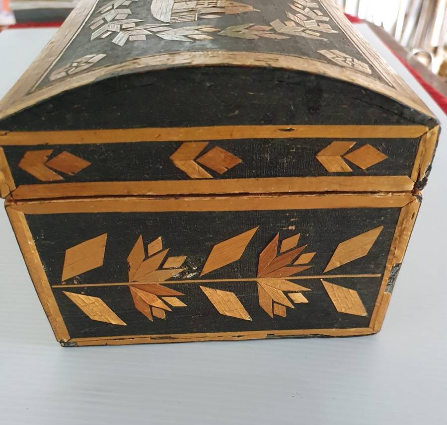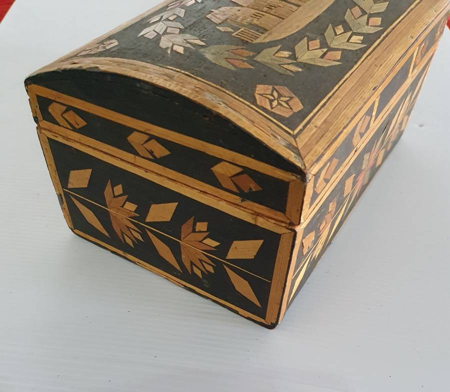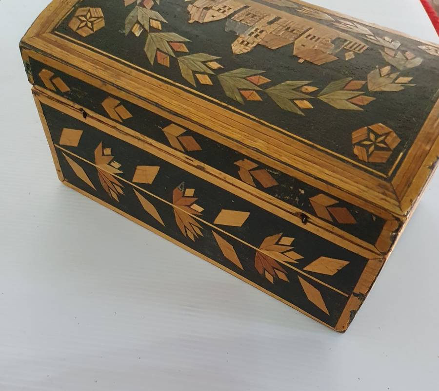 ON AUCTION: ANTIQUE WOOD CARVED AND INLAY JEWELLERY BOX. AWESOME DETAIL !!