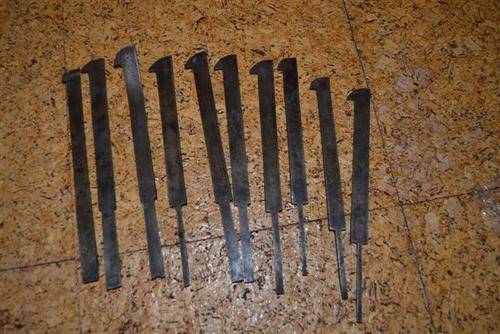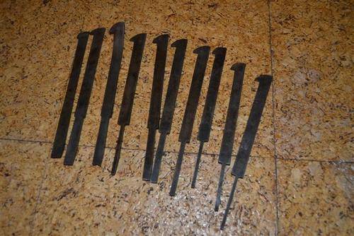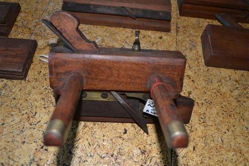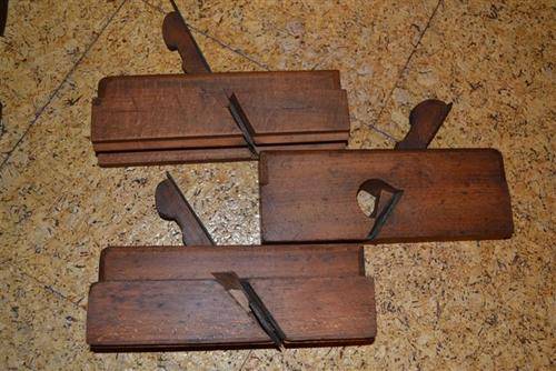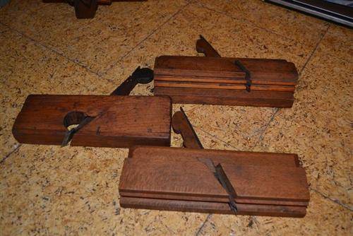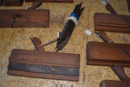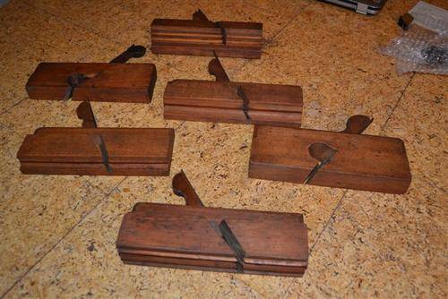 An assembled set of antique wooden plow and moulding planes. Bought from Sotheby's on auction in 1994 and have never been used since. There are 14 planes as well as a set of blades.