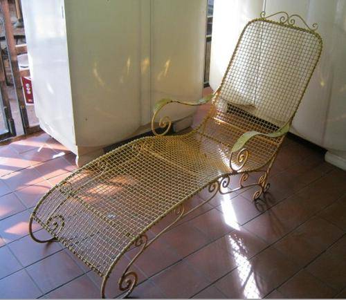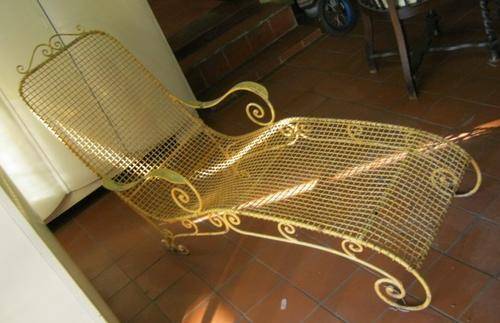 Beautiful antique garden or pool wrought iron lounger with pillow,needs some paint and t.l.c,please note hand collect or courier only which are the fees to be quoted.