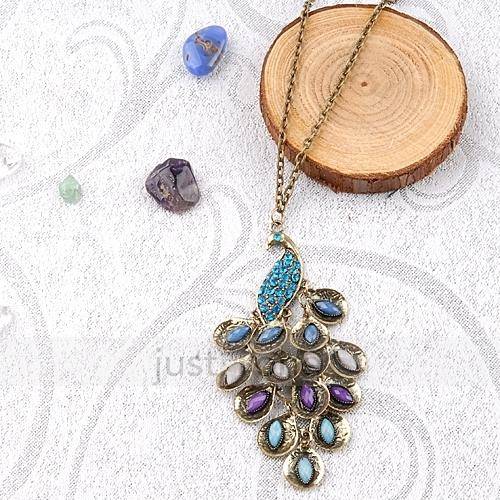 Antiqued Peacock Crystal Multi Sequen Pendant Necklace
