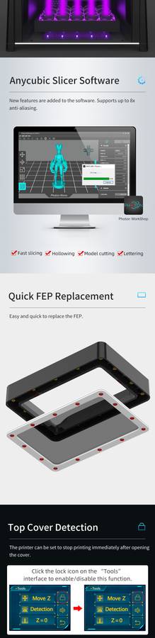 | Product | Anycubic Photon Mono 2K High Speed Resin 3D Printer 130x80x165mm With 2K LCD Screen / Parallel Light Source / Top Cover Detection / High Quality Power Source |