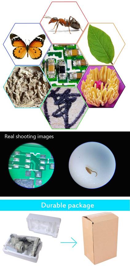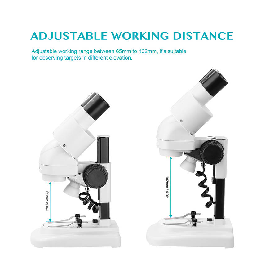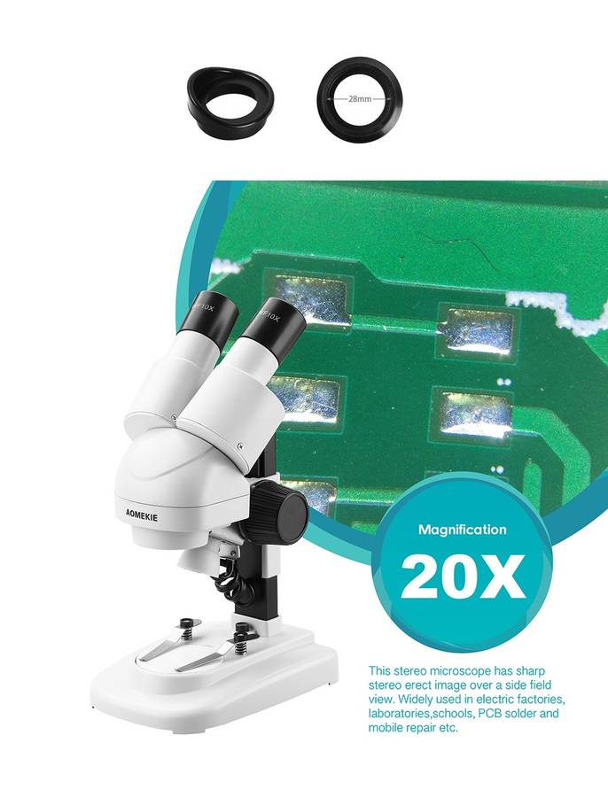 Features: 1.This stereo plastic microscope has sharp stereo erect image over a side field view.Widely used in electric factories,laboratories,schools,scupture and families etc. 2.45 degrees binocular eyepieces view head, convenient sitting operation. 3. The interpupillary distance is between 50-75mm. 4.The working distance about 7-11cm 5.Built-in top LED light 3V 6.Full environmental protection plastic body and easy to carry. 7. Antiskid rubber in the bottom. 8.Carton and foam inner box packing. Prevent damage in transit. Specifications: Theory:Stereo Microscope Drawtube:Binocular Total Magnification:20X Total magnification 20X= (Eyepieces 10X) x(Objective lens 2X) Eyepieces:WF10X Objective lens: 2X Top Light:LED Electrical Illumination Interpupillary distance: 50-75mm Batteries:2 AA Batteries (Not Included) Package Includes: a a1 x Microscope 2 xWF10XEyepieces a1 x Eyecups a aDetails Pictures: a