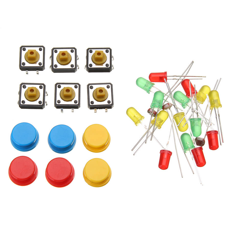 This is an upgrade version UNOR3 starter kit, adds more components to achieve more features and experiments. You'll learn and build a lot of creative projects with this kit. Start with the basics of electronics, to do more complex projects. Package Included: 1 x UNOR3 CH340 1 x USB CABLE 1 x 400 holes breadboard 5 x LED lights red 5 x LED lights green 5 x LED lights yellow 10 x Resistor 220 ohm 10 x Resistor 1K 10 x Resistor 10K 10 x Resistor 100K 2 x Photoressistor GL5516 6 x Buttons 1 x 9V Battery Connector 4 x 2.54mm Pin single 20pin Male to Male Dupont Cable