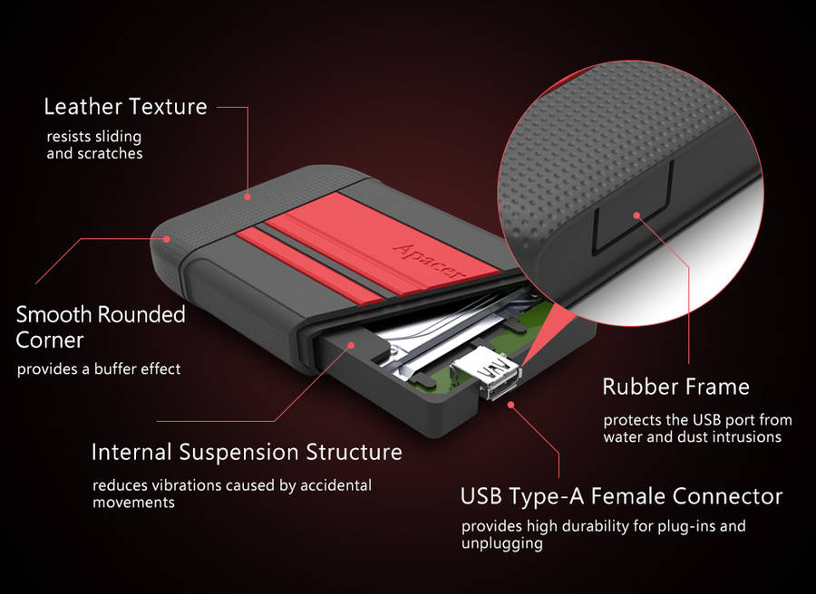 • Description: Apacer AC633 1TB USB 3.1 External Hard Drive - Red