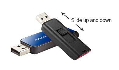 Apacer AH334 (AP8GAH334U-1) 8GB USB 2.0 Retractable USB Flash Drive - Starry Blue, Color Your Life and Needs, Compact and Streamlined design, Capless Design with a hidden slide key, Strap hole for easy carry, Retail Box, Limited Lifetime Warranty